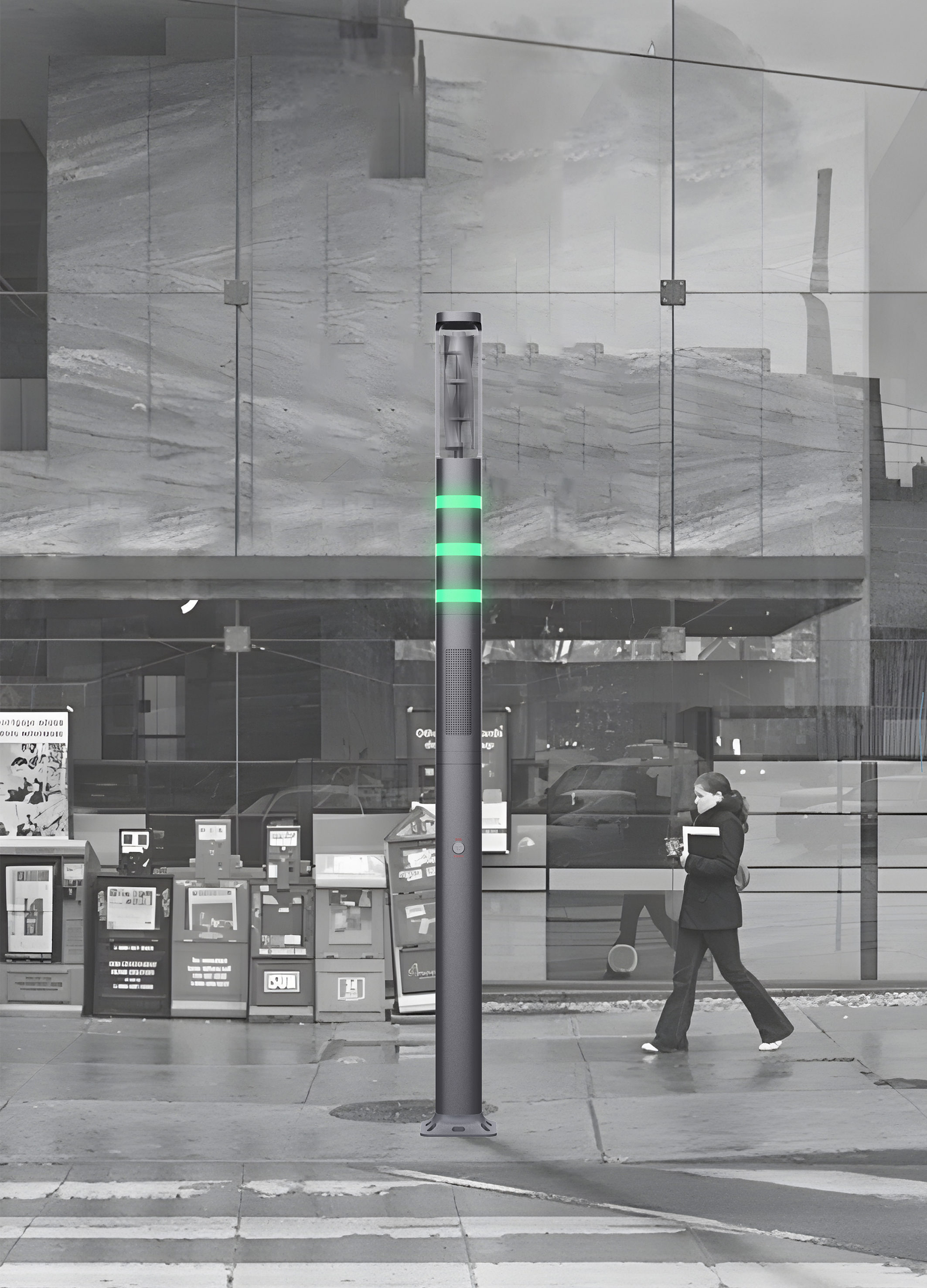 A future-leading modular urban smart pole, based on the integration of safety, energy saving and interaction,improves user safety and experiences the charm and design of environmental space.With the fast-changing society, people's demand for security in public spaces is getting higher and higher. Therefore, smart lighting products that provide security are more in demand.The traditional power supply method relies on the power supply of the grid. The design of the work makes it possible to choose to use mains electricity or self-generated clean energy according to the actual situation, providing more flexible and environmentally friendly energy options. At the same time, the work can also provide convenient charging services for other devices through the charging module, reducing the dependence on traditional mains charging equipment.According to the application of the actual scene, multi-module reorganization is realized through convenient disassembly and assembly; the unique structural design makes the whole smart pole simple and neat. In addition, the light pole uses a specific coating to adapt to various harsh environments.Introduce the traffic indication function, realize the effect of traffic lights and improve traffic safety by controlling the color and flashing frequency of the aperture module; at the same time, the product introduces a one-key call module to provide users with emergency call and alarm functions, and the aperture is used as a guide and Warning to ensure their safety and increase the user's sense of security; the linkage between the aperture module and the charging module reminds the user of the charging status by changing color and flashing. Environmental protection and energy saving: This product uses wind energy modules and solar modules, powered by green energy, reduces dependence on traditional electricity, and improves product sustainability.