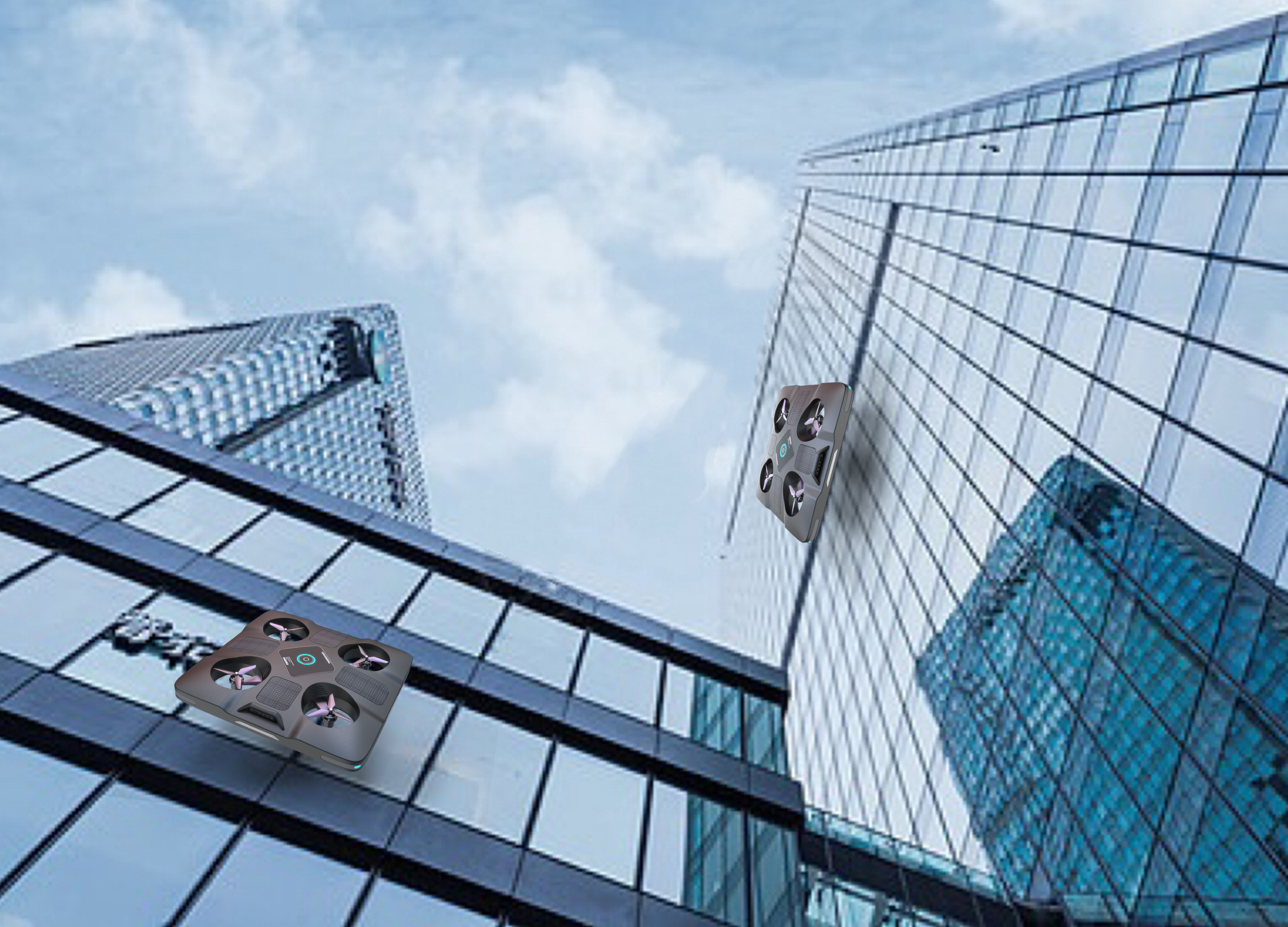 With the acceleration of urbanization and the rapid growth of high-rise buildings, the cleaning and maintenance of high-rise windows is becoming increasingly challenging. Traditional window cleaning methods require manual climbing and hanging of fragile scaffolding, which is not only inefficient, but also carries extremely high risks and safety risks. Therefore, it is urgent and important to develop an efficient, safe and reliable window cleaning solution.Making full use of modern technology and innovative thinking, we propose a completely new design solution to meet the requirements of high-rise window cleaning. The UAV adopts a multi-rotor design as a whole, which can hover and move autonomously on the outer wall of a tall building. Equipped with a professional window cleaning device for efficient window cleaning.The manufacturing process of high-altitude window cleaning drones should consider the following aspects: 3D printing technology can realize the rapid manufacturing of complex structures, which can be used to manufacture small parts and specially shaped parts of drones. CNC machining technology can accurately process each part of the drone, improving manufacturing accuracy and consistency. Automated assembly through the automated assembly line can improve production efficiency and quality control, to ensure the manufacturing consistency of the drone, the surface treatment of the UAV can use spraying, electroplating and other processes to improve the corrosion resistance and appearance quality of the material.Through this design, high-altitude window cleaning multi-rotor UAVs will bring revolutionary changes to the window cleaning industry. It will provide a safer and more efficient working environment for cleaning personnel and significantly improve the quality and efficiency of window cleaning. In addition, it reduces labor costs and reliance on traditional cleaning methods, making a positive contribution to the maintenance of urban environments and window cleaning.