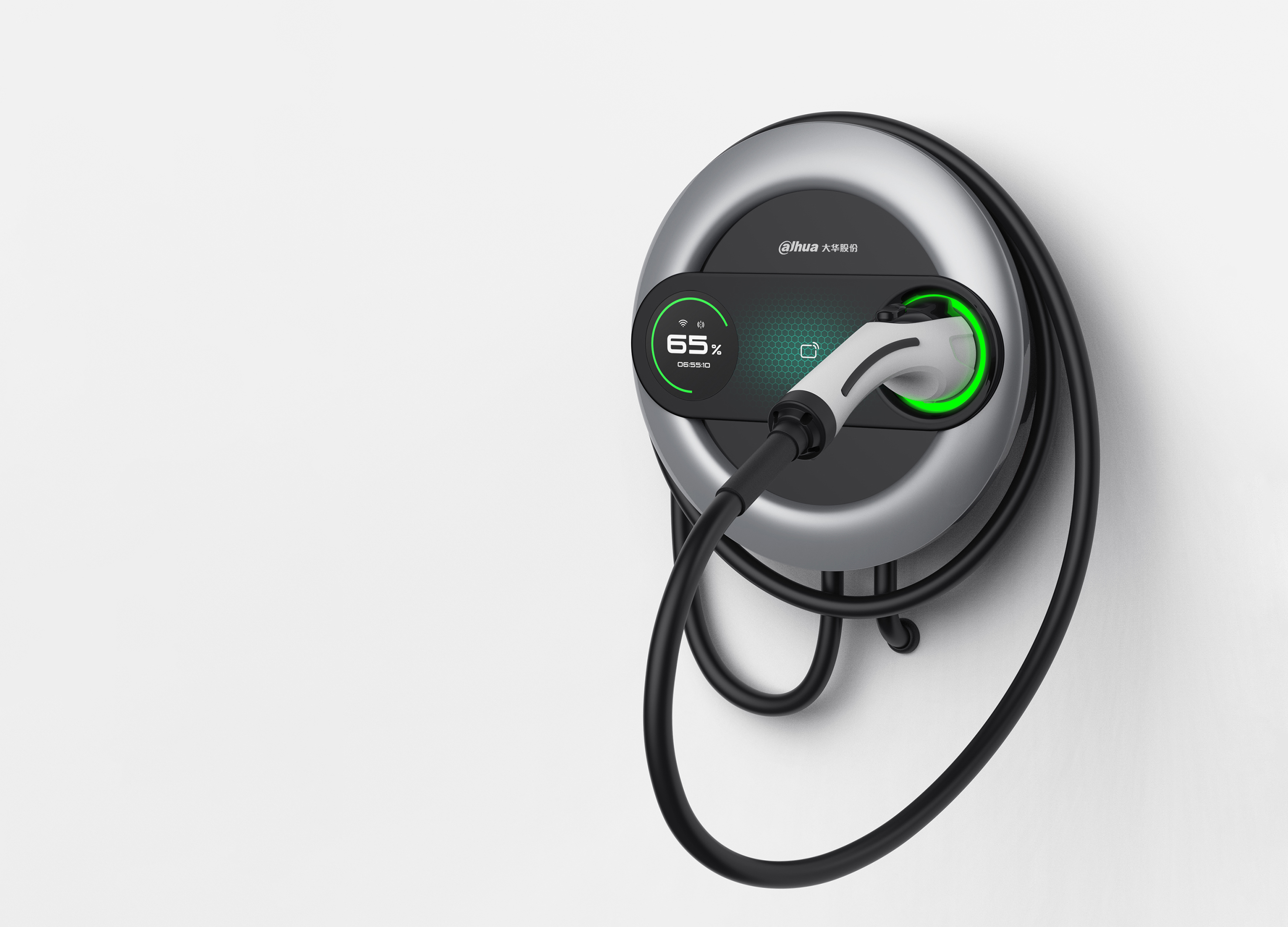 Hua Power is a comprehensive electric vehicle charging service system that can provide various services for third-party users' charging needs for new energy vehicles.。Hua Power supports multiple startup methods, including plug-and-charge, mobile app control, and Bluetooth remote control. It features automatic power cutoff protection when not charging or when the battery is fully charged. Additionally, it has a power outage memory function, meaning that if there is a power interruption during the charging process, it will automatically resume the original charging status when power is restored.。The circular shape of the casing allows the charging cable to be neatly wrapped without the need for an additional component for cable placement. The circular breathing light on the charging gun conveys the charging status and device operation status, making the charging process lively and more enjoyable.。Hua Power's circular outer shell can be customized with different colors and materials, while the charging plugs can be replaced with various specifications to meet the diverse needs of different regions, scenarios, and users. Moreover, its stylish and technological design seamlessly integrates into various environments, including homes, workplaces, and parking lots. The market value of Hua Power is immense.。Product safety is of utmost importance, and Hua Power incorporates various safety measures. It includes an emergency stop button that can cut off the power supply circuit in emergency situations to ensure charging safety. The product also provides multiple protections such as overcurrent, overvoltage, short circuit, leakage, overheating, and lightning protection to ensure safe usage.