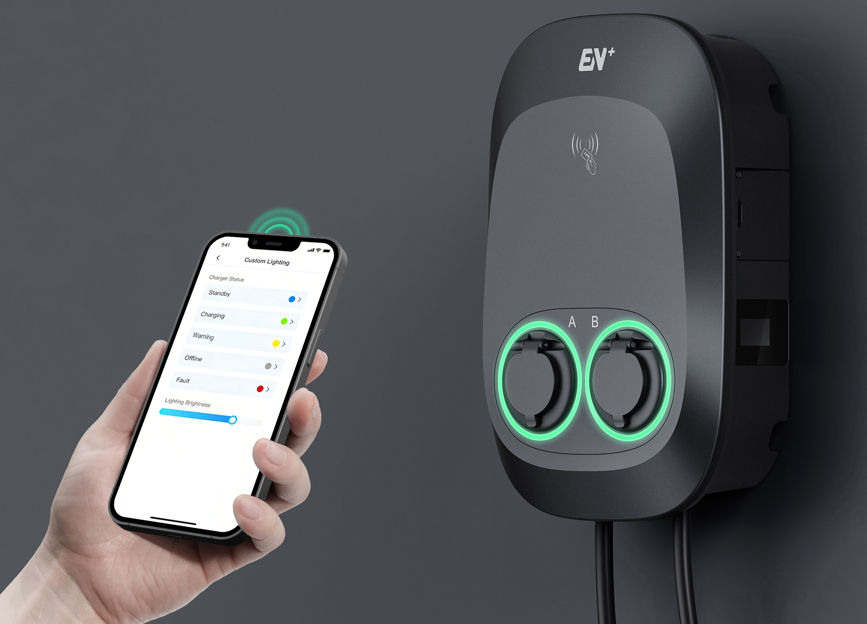 Growing concerns about climate change, influenced by carbon emissions, have catalyzed the rapid expansion of the electric vehicle industry. This expansion necessitates more convenient and intelligent charging solutions to meet consumers' demands. This product proposes a design featuring a single-charger, dual-connector system with additional functional enhancements to address the limitations of current charging modes available in the market that are capable of only "one charger, one use". This approach seeks to optimize users' charging requirements while conserving energy and maximizing societal benefits.Double-connector EV Charger Design: This EV charger allows for simultaneous charging of two vehicles, catering to households with multiple cars. The single charger with dual connectors design streamlines the installation process and maximizes space efficiency, ultimately helping households preserve valuable garage or parking space. Interactive Innovation: The dedicated supporting App offers a range of features, including EV charging map siting and scheduled charging services. Users can initiate charging autonomously using various methods such as 4G, Wi-Fi, and Bluetooth. Thanks to its internally compact technology, the product's enclosure boasts a visually appealing, lightweight, and slim profile. The clean and sleek cut surfaces create a modern sculptural feel, aligning seamlessly with the design and quality of modern electric vehicles. Its minimalist design integrates perfectly into any working environment.Visualized Electricity Meter Design: Enables users to monitor real-time power consumption, facilitating better management of energy usage and expenditures. RCBO Maintenance Window Design: The maintenance window allows users to clearly see the status of the RCBO, making maintenance and troubleshooting easier to ensure its normal operation. Multiple Interconnection Methods: In its design, installation considerations were paramount for ease of use, incorporating a variety of input and output cable holes to facilitate diverse interconnection methods and flexible installation methods, further ensuring high quality user experience.