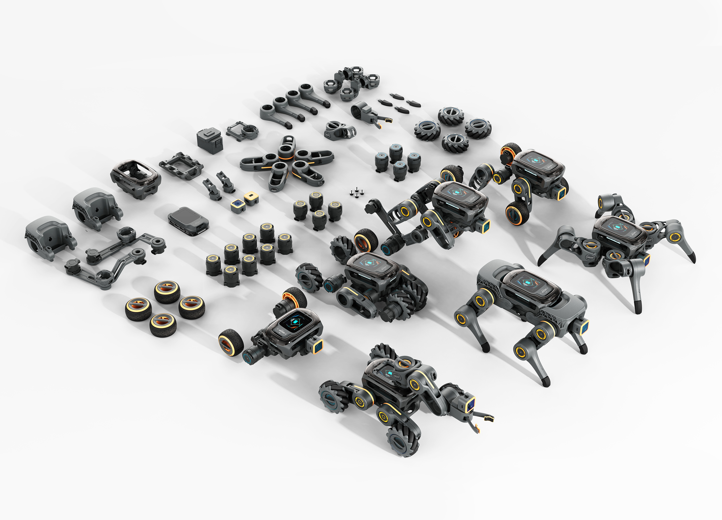 UGOT is a modular, multi-mimetic robotics kit for AI education that is well suited to meet the growing demand for AI education.With modular parts and innovative knob lock design, UGOT allows students to quickly put together multiple forms of robots without any tools and with the help of 3D building drawings within the app. Compared to small-particle building block products, UGOT saves 90% of building time, allowing students to focus more on learning AI AI in limited classroom time.UGOT features open AI algorithms and large models with multiple open-source ports; a range of technology highlights including visual tag recognition, FPV first-person view synchronised with the app, pedestrian/motion tracking, pose recognition , speech recognition, integration with ChatGPT, custom training, fast assembly, high-speed control, 360-degree far-field speech recognition, and more.UGOT series of robots using bionic tension robot form design, to better meet the student's imagination and easy to understand the robot, coupled with the cool sense of dark-coloured appearance can inspire students to unlimited imagination and exploration of the robot, the body module components are designed with a sense of muscle, the joints of the raised shape, so that the form of the machine out of the assembly is solid and impactful.UGOT is different from the fragmented feeling and cumbersome assembling process of blocks and other products, the large module and innovative knob lock design is simple and easy to use, and through the simple rotation of the components using different directions of the force of the occlusion of the relationship between the modules to bite each other, strong and reliable, better stability and safety.