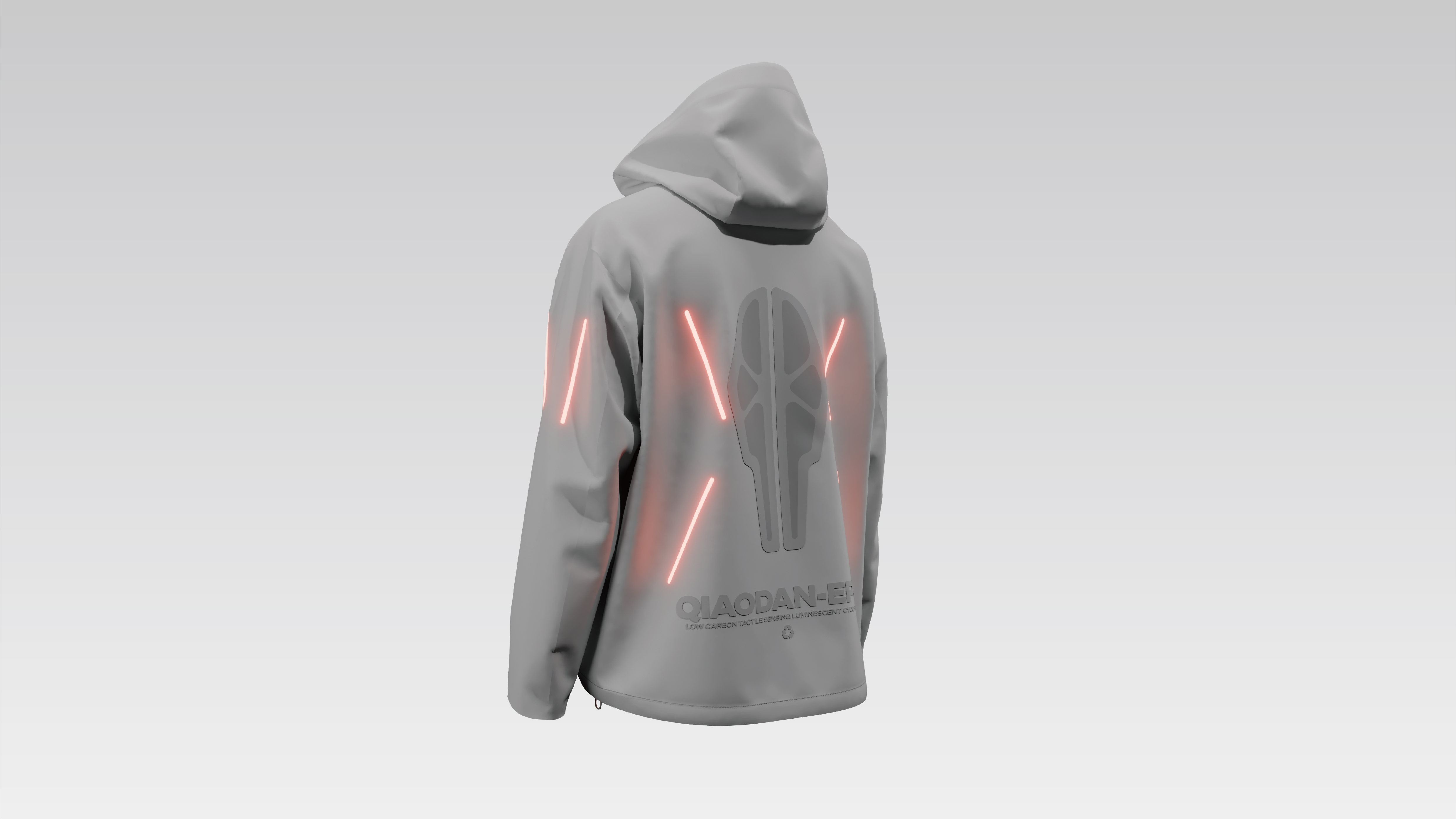 The intelligent cycling windbreaker is designed specifically to enhance nighttime cycling safety. In response to the increasing risk of cycling accidents in low visibility environments, it innovatively features a touchable sensing and lighting system. The system consists of a dual interactive structure consisting of a cuff touch sensing module and a high brightness light-emitting crystal light strip on the back. When cycling and cruising, lightly touch the cuff sensor, and the back will immediately activate a constantly lit red light, clearly indicating the rider's position through a stable light source; When encountering emergency parking or temporary parking, the sensor will be touched again, and the light strip will automatically switch to high-frequency flashing mode to dynamically alert and strengthen the attention of vehicles behind. The dual-mode intelligent switching mechanism takes into account both normal safety positioning and sudden risk warning, effectively reducing the probability of accidents such as rear end collisions and scratches caused by insufficient visibility at night, and building an active light-sensitive protective barrier for cyclists. At the same time, all materials of the cycling jacket are designed environmentally friendly, and the first zero carbon sports concept suit is launched, supporting the United Nations Sustainable Development GoalsIntegrating intelligent lighting with clothing, the glowing light located on the back can be quickly triggered by touch, providing two modes of constant light and flashing. In terms of safety, the flexible sensing luminescent material has strong conductivity, waterproof performance, and is flexible and skin friendly1. Security: Active light sensing protective barrier, rather than passively waiting to be discovered. By actively emitting light to indicate one's own position, the risk of being rear ended or scratched is significantly reduced, which reflects the highest concern for the rider's right to life and safety; 2. Health: Integrating the luminous light with clothing can always indicate one's own position, significantly enhancing psychological safety and effectively relieving the pressure of nighttime cycling, making the cycling process more relaxed and enjoyable. In addition, all cycling clothes are made of sustainable and environmentally friendly materials, jointly protecting the ecological development of the earth.1. Form beauty: The slim fit fits the riding posture, and the back light strip is embedded in the windbreaker in a horizontal streamlined shape, which not only maintains the simple outline of the clothing, but also enhances visual recognition through geometric light strips. When illuminated at night, the red lines create a dynamic rhythmic beauty. 2. Functional beauty: The cuff micro sensor seamlessly integrates with clothing, and touch interaction only requires a single finger tap. Dual mode switching (constantly on/flashing) accurately corresponds to cruise and emergency scenarios, achieving complex safety logic with extremely simple operation. 3. Material beauty: The high brightness luminescent crystal light strip adopts flexible film technology, which bends and fits the human body without stiffness; The base material of the windbreaker is made of lightweight windproof fabric, and the technology components achieve a unified texture with the clothing texture. 4. Craftsmanship: The light strip is seamlessly embedded into the fabric using hot pressing technology, without raised stitching; The sensor circuit is connected to the main control module through conductive yarn, with completely hidden internal wiring and no redundant structures on the surface. 5. Technological Beauty: The "Touch Light Sensing" system transforms safety warnings into an elegant language of light: the constant light mode is stable like breathing, and the flashing mode is pulsating like a pulse, transmitting danger signals through biological rhythm like light effects, achieving intuitive poetic expression of human-computer interaction.Pioneering the concept of "zero carbon" in the field of sportswear, environmentally friendly materials are used in all parts of clothing fabrics, zippers, sewing threads, etc. The entire garment can be made from only 32 discarded plastic bottles. Professional cycling windbreakers can enhance consumers' riding experience, allowing people to enjoy cycling and thus contribute to sustainable social development.