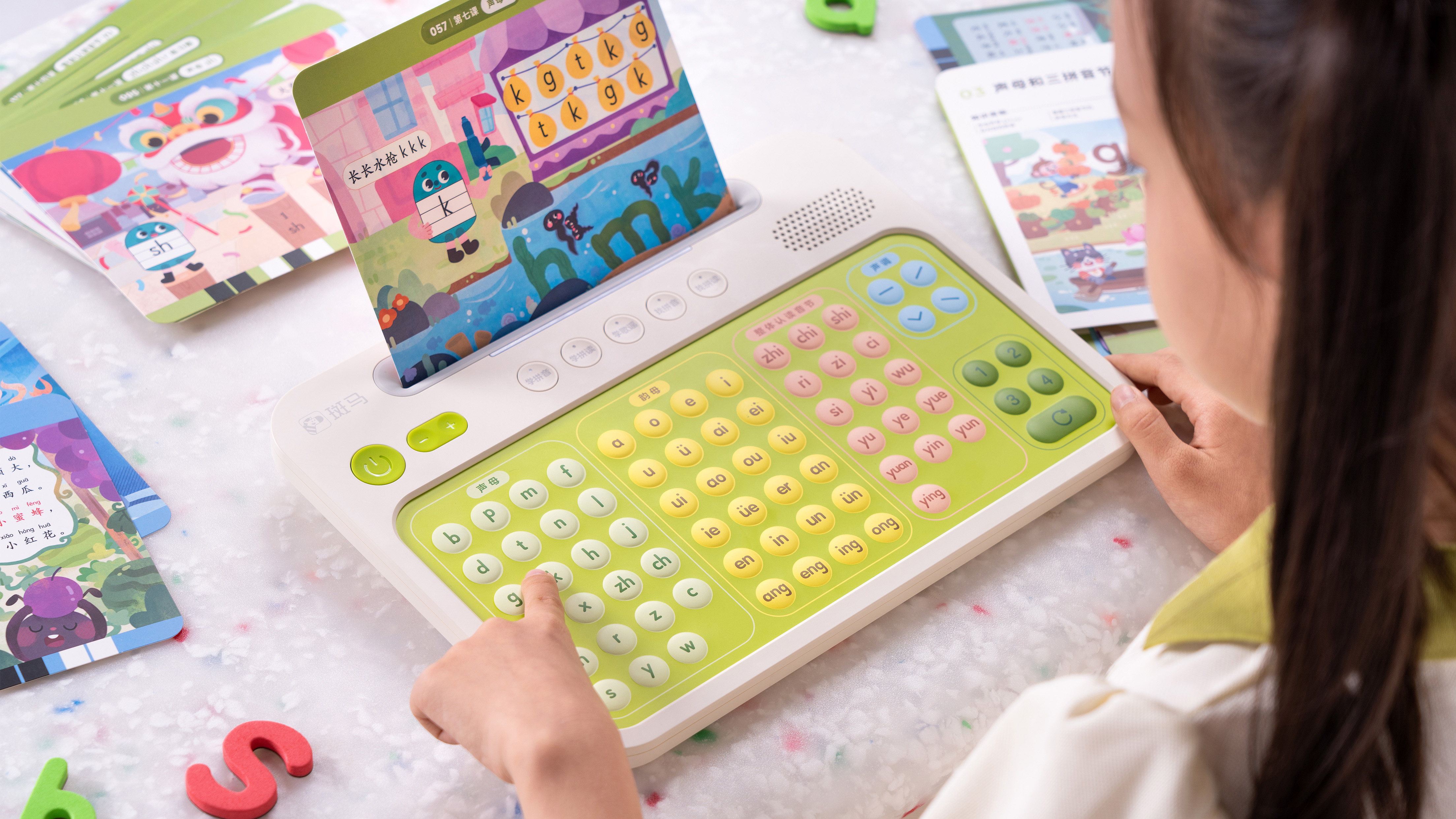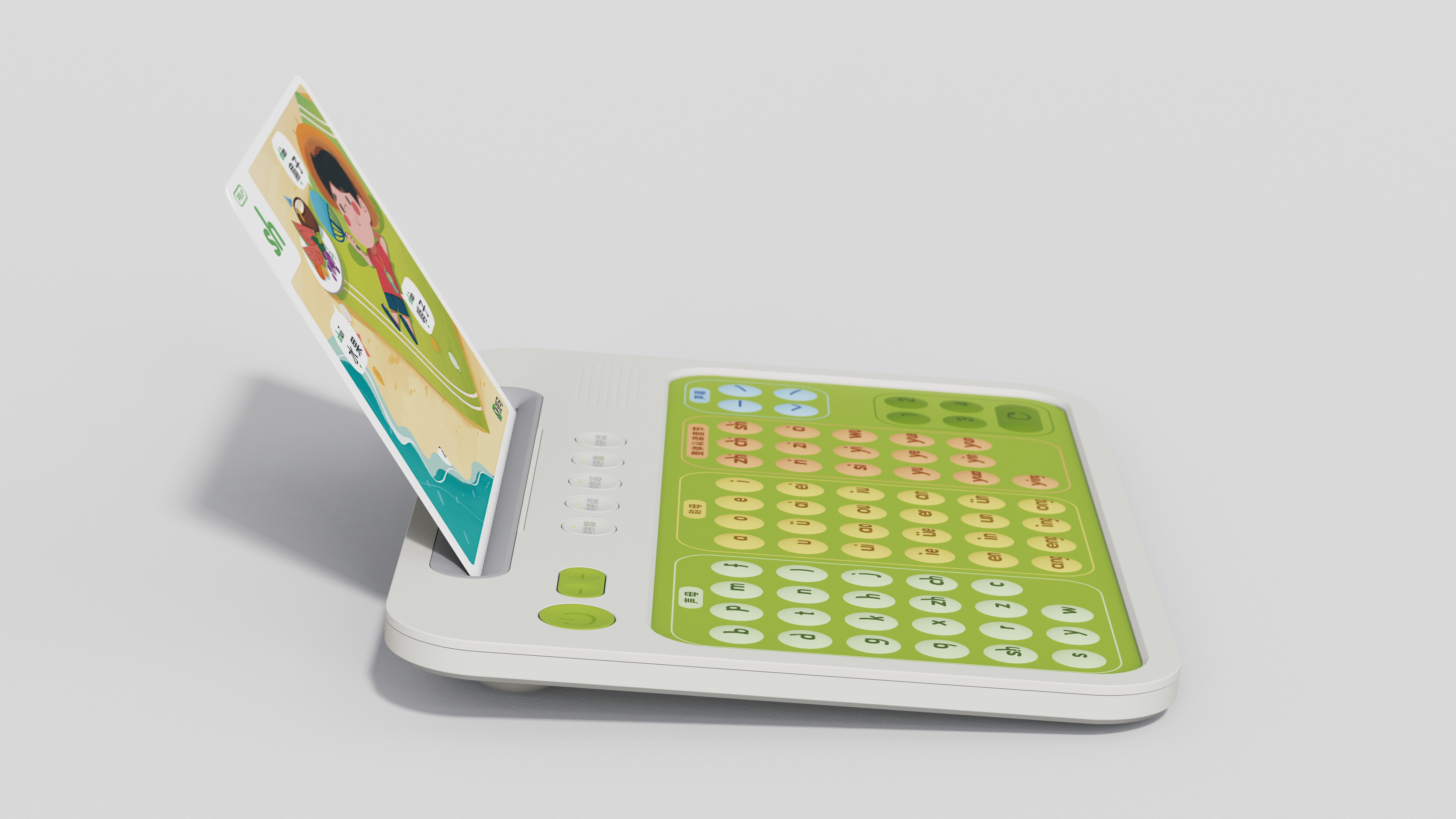 The product provides 5 basic modes from easy to difficult,including learning pinyin,learning phonics,learning ballads,finding pinyin and finding phonics,combined with the interactive mode of plug-in cards to achieve closed-loop learning of recognition-reading-spelling-writing-practice-testing,accompanied by vivid sound effects of different scenes and intelligent voice guidance feedback,guide children to independently and gradually learn Chinese pinyin.Innovative learning mode: Unlike existing pinyin learning devices on the market, this product features an interactive card-insertion mode that uses games to guide children in reviewing and testing their knowledge.Combined with the five basic modes provided by the product from easy to difficult,it realizes a closed-loop learning process of recognition,reading,spelling,writing,practice,and testing.With intelligent voice guidance,it helps children independently and progressively learn Chinese pinyin. Scientific keyboard layout: Using bright colors to distinguish the Initials,Finals,Overall recognition of syllables and Tones in Chinese Pinyin is helpful for preliminary recognition and memory.At the same time,arranging them from left to right will help master the rules of pinyin combinations. Through-slot: The innovative design of the through-slot can effectively reduce the card recognition failure rate: when using the product, foreign objects (such as drinks or food residue) can fall directly outside the machine, rather than entering the slot and obstructing the recognition sensor.Easy of use: Ergonomic design,the machine and card are designed with ergonomic angles of 5 and 120 degrees, which effectively improves the experience when using.Zebra Pinyin Board is based on the concept of professional educational tools,using regular geometric shapes as its design language to create a simple and rational appearance that highlights the product's functionality and professionalism.The Pinyin keyboard uses a whole sheet of PP composite paper,compared to traditional ABS keys,effectively reduces the use of raw materials and lowers costs.Additionally,this design enhances the overall feel and comfort of typing.