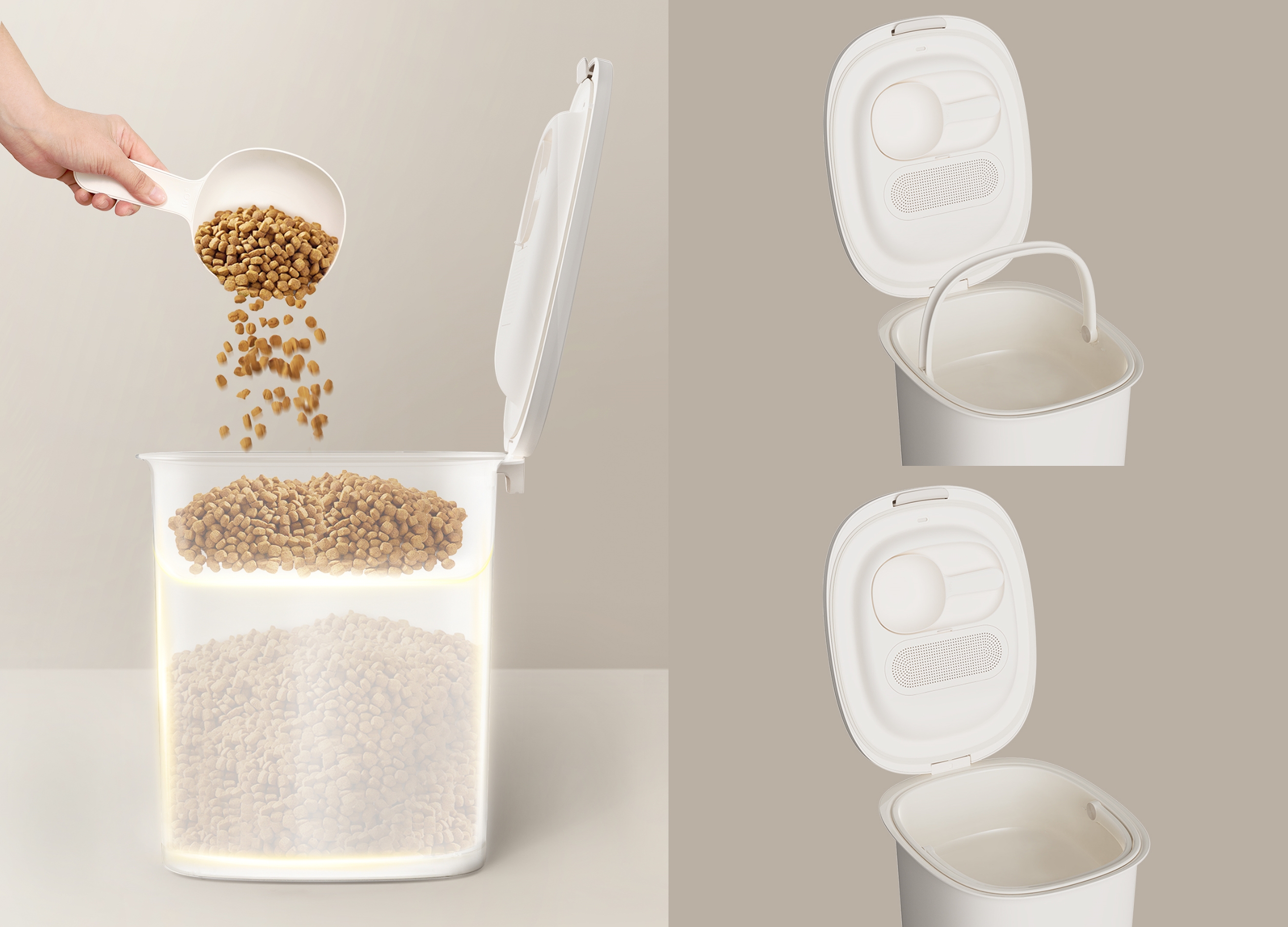 MEOOF Vacuum Dry Bucket: An advanced solution for food and valuables storage, integrating large capacity, vacuum pressure maintenance, active dehumidification, dual self-locking buckles, dual-chamber vacuum sealing, and multi-functional pump technology.Our pioneering kinetic moisture circulation technology features humidity monitoring with anomaly alerts. The industry-first dual self-locking buckles utilize physical self-locking principles, engaging automatically with vacuum suction. The dual-chamber vacuum system enables zone-specific access through an intuitive pressure-release handle, demonstrating technical leadership.We revolutionized vacuum storage by evolving beyond single-function vacuum systems, single compartments, and impractical latches to deliver: Vacuum sealing + Active humidity control,Independent upper/lower chamber sealing,Dual self-locking buckle innovation.User-centric details include: self-activating vacuum upon lid closure, 1-second quick-release opening, suspended-lid access, magnetic scoop, lithium-ion battery, and wheeled base – collectively enabling simpler, more efficient, and effortless storage.Beyond smart dehumidification and real-time pressure maintenance technology, we ensure optimal preservation: Food-grade opaque materials block light degradation,Silver-ion antimicrobial treatment inhibits bacterial growth,Packaging transforms into DIY cat houses promoting sustainable reuse.