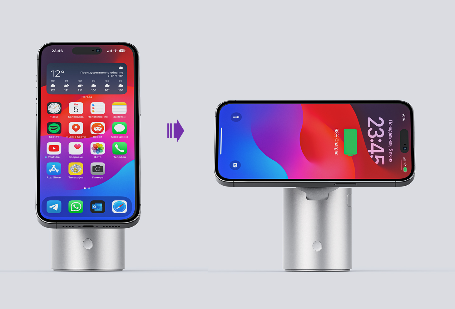 iWALK foldable 3-in-1 wireless charger is the industry's first electric rotating charging stand controlled by infrared induction. Its MagSafe 3-in-1 function can charge mobile phones, watches and earphones at the same time. Equipped with 15W fast charging and intelligent power adjustment, it is efficient and safe, while keeping the environment tidy.Equipped with self-developed iWALK AutoTurn Tech, it uses infrared induction to control the electric motor, enabling contactless 90° horizontal and vertical screen rotation of the mobile phone. The 0-65° flipping angle conforms to ergonomics, relieving fatigue. The automatic vertical screen reset function avoids confusion.The N52 strong magnet provides a 1.2KG suction force to prevent falling. It has passed multiple certifications to ensure safe use. With a simple and stylish appearance, it is suitable for multiple scenarios and conveys the concept of "small size with great functionality".Adhering to the concept of environmental protection, it uses recyclable materials and adopts glue-free injection molding. It contributes to carbon neutrality and stands out as a preferred charging solution that integrates innovation, practicality and environmental friendliness.