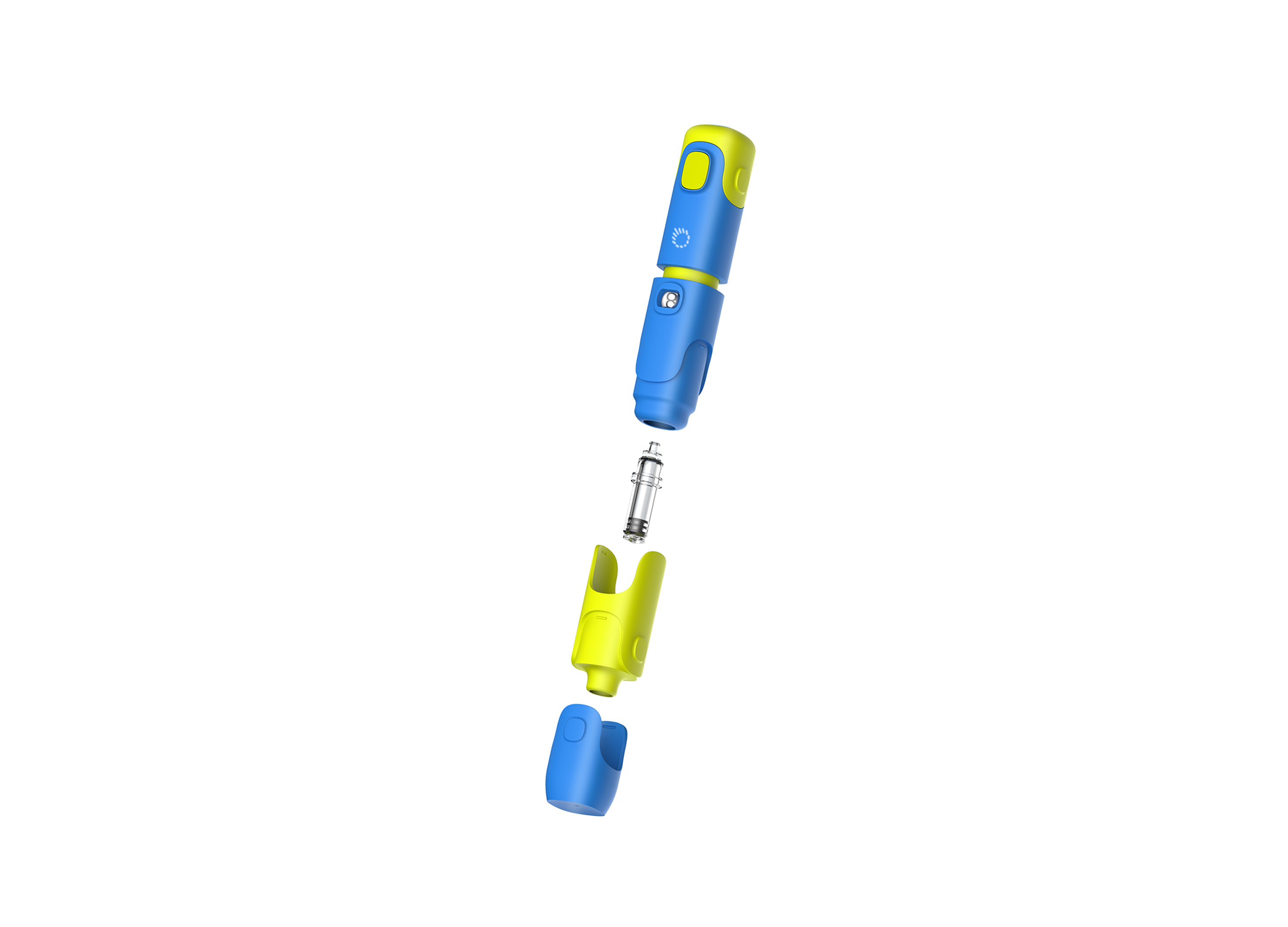 The needle-free injector, which is specially designed for children, is used for hypodermic injection, e.g., insulin and growth hormone injection. Compared with needle injector, it eliminates children's fear of needles, while minimizing such piercing pain and probability of cross infection. Moreover, it improves the bio-availability of drug, so its response time is reduced, while the localized hardening of soft tissue caused by prolonged use of local injections can be avoided. The design inspired by the jigsaw?puzzles, which creates a modular structure. The extraordinary softness of body is conveyed by its round shapes. Its bright colors, like a trick, let the children forget the pain.