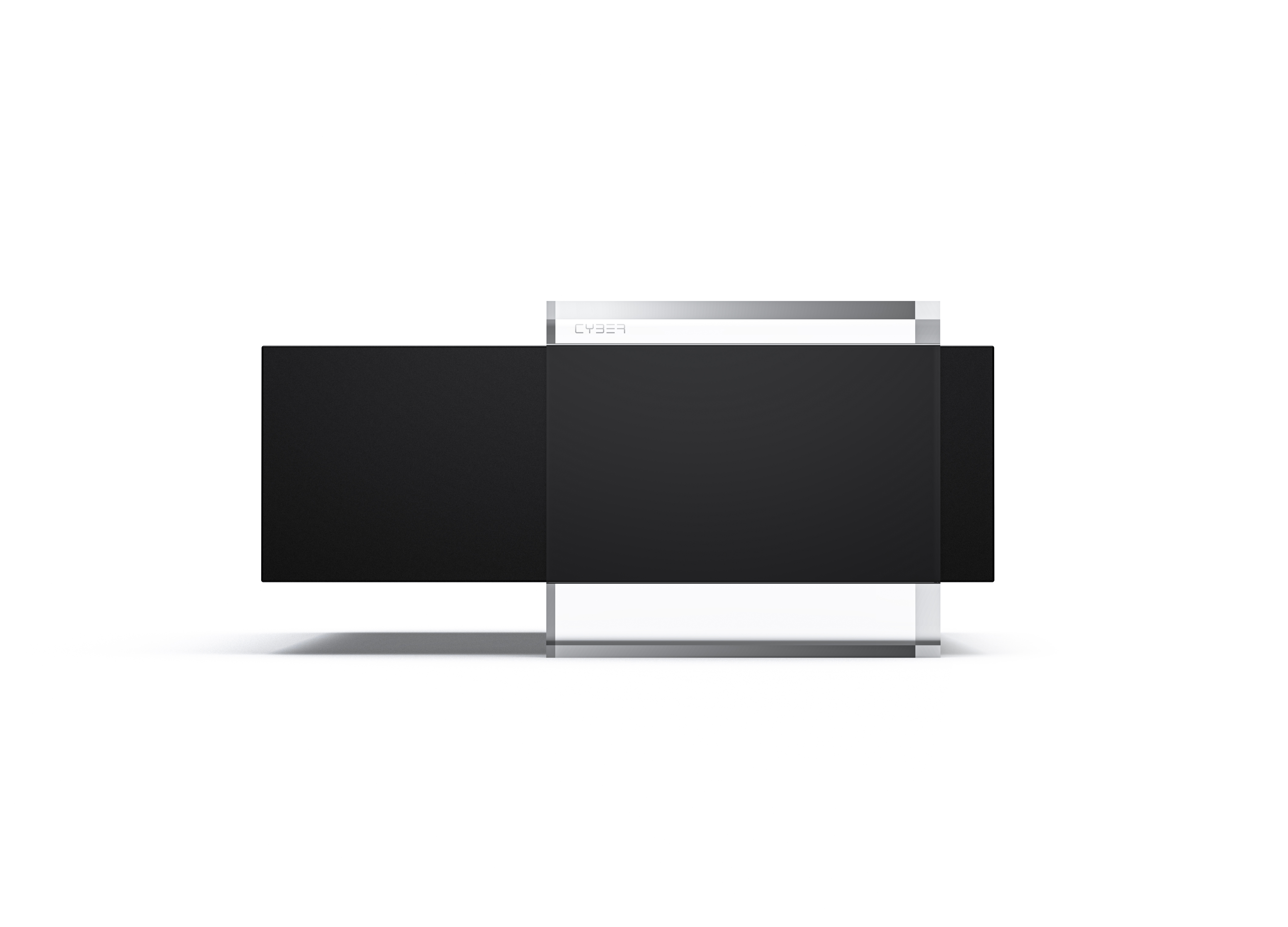 The inspiration of Cyberize HC comes from the building of Flowing Water Villa. The overall shape is composed of two cubes interspersed and stacked. In terms of the size, position and proportion of the two cubes, we have applied the golden ratio principle many times and finally formed the current product shape. In terms of material, the product adopts the collision of metal and translucent material, which ensures the beauty of form and also meets the functional requirements of heat dissipation. The functional details are practical. After repeated adjustment of the rounded corners, the edges are neat but not cut. The connection sockets on the back also adopt hidden ideas, so that the messy plugs are arranged more neatly; the translucent body is painted with gradient paint, which brings an artistic atmosphere to the product, and can be used as a replacement accessory to provide a more personalized combination.