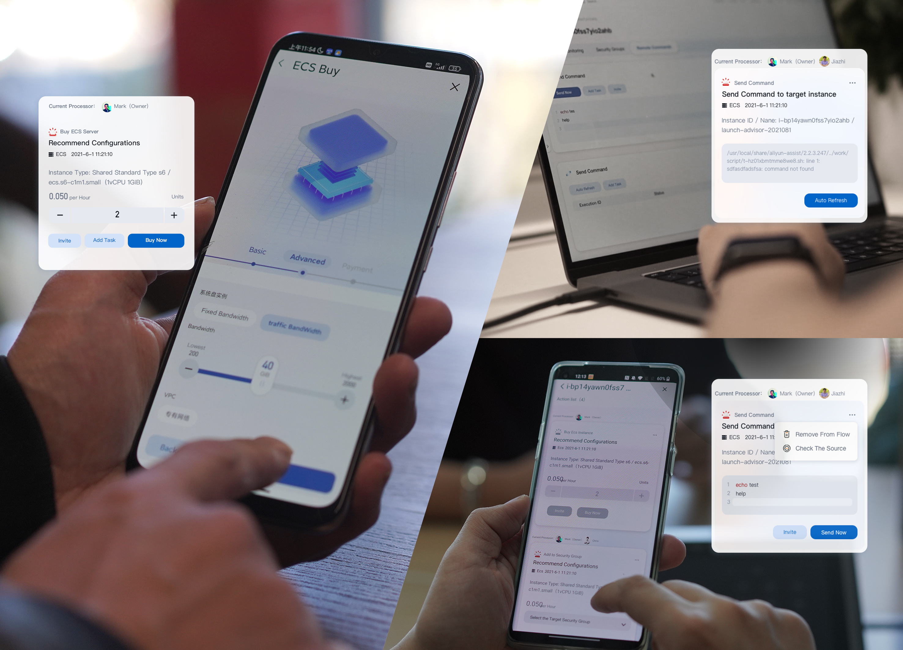 Based on years of experience design and exploration in the field of cloud computing, combined with experience feedback from millions of paying users, Alibaba Cloud Intelligence Mobile Platform make the complex resource monitoring view mobilized by focusing on the distribution, status, events and other attributes of cloud computing resources, and further, it provides more convenient emergency operation capabilities for abnormal monitoring results. By integrating and preprocessing complex cloud resource purchase operations, the ability to quickly purchase and deploy cloud resources is simplified. By modularizing the operation and maintenance function and adding module task attributes, these function modules can be added to different task processes as needed, and handed over to more suitable users for processing, so that complex management and control operation and maintenance operations can be coordinated by multiple devices and multiple people. It greatly reduces the difficulty of using cloud resources, and builds a new generation of mobile operation and maintenance experience for users on the cloud.