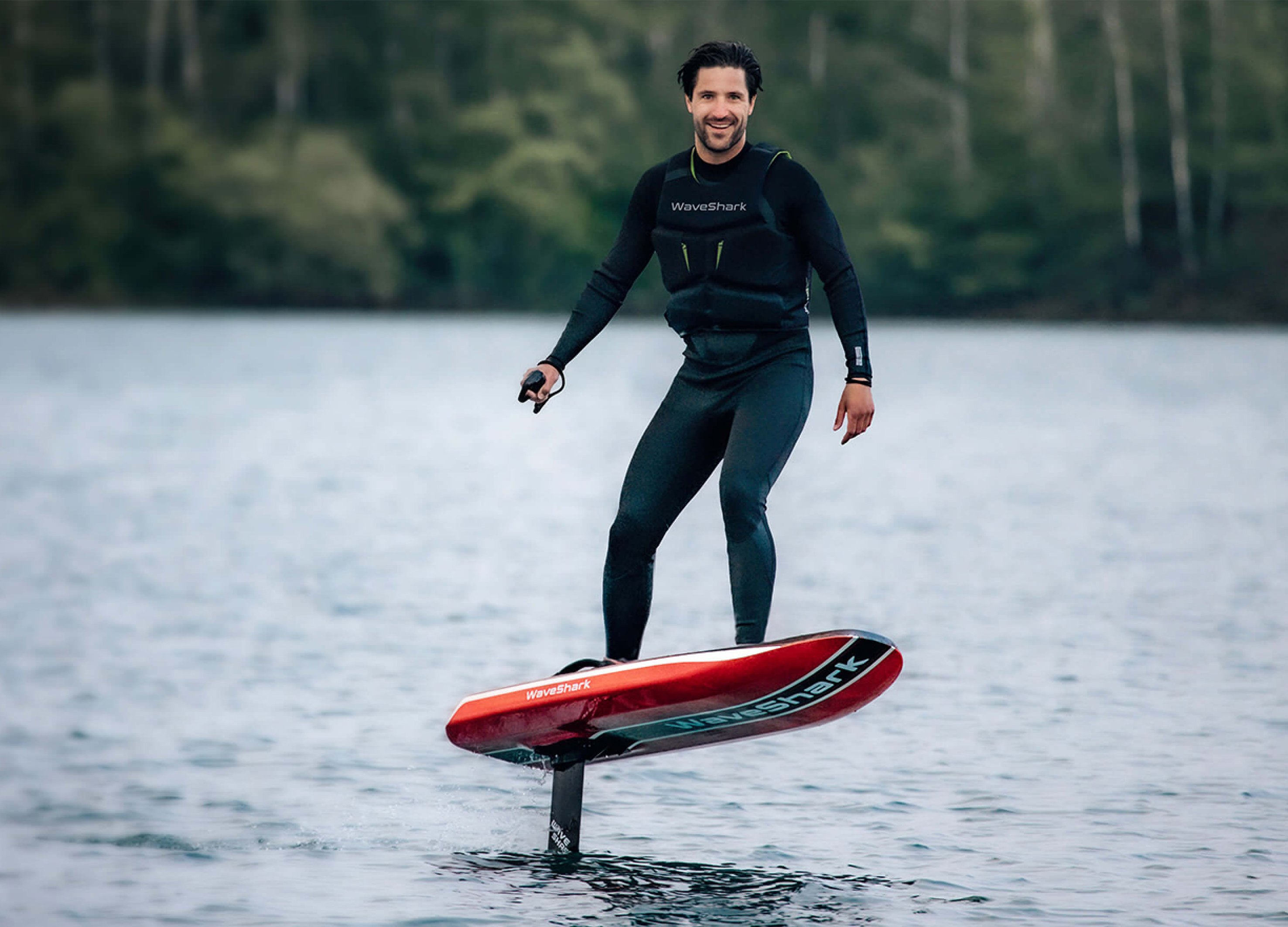 WaveShark Foil is an innovative water sports product. It changes the traditional way of surfing which relies on the environment, water body, and weather. Even a newbie who has zero experience in surfing can still enjoy this sport using our product, which greatly lowers the entry barrier to the ultimate surfing adventure. WaveShark Foil uses a 2.6kWh lithium battery instead of a conventional engine used by petrol-powered surfboards to achieve zero emissions while delivering power for up to 120 minutes, creating a new surfing experience. WaveShark Foil offers a quieter, safer experience than traditional surfing. Focusing on exhilarating feelings. Self-developed, highly efficient thruster technology provides tremendous propulsion while keeping noise at an imperceptible level. You can glide quietly over the water like a bird, listening to the sounds of nature.