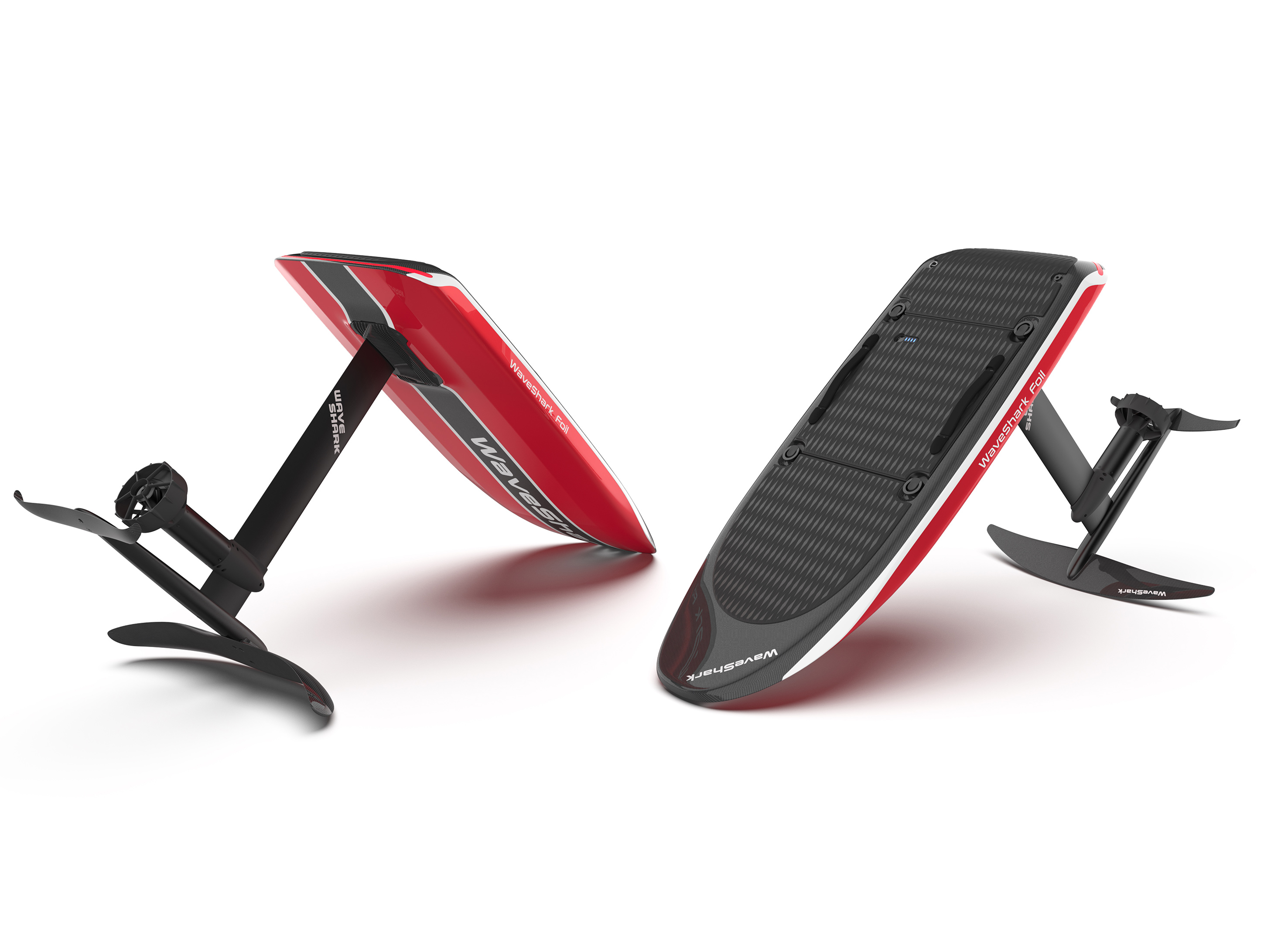 After repeated testing, our boards and foils are greatly improved in terms of reducing water resistance and increasing maneuverability. Especially hull part, buoyancy volume, ratio of the center of gravity, bottom of the hull, rear of the hull, and curve of the edge have gone through endless simulation scenarios and test runs which allowed us to analyze and achieve the best balance between appearance and function. In terms of foil design, we provide users with two different models of wings. One is larger, providing more lift and a more stable experience, while the other is smaller, but faster, more flexible and exciting for more experienced players.