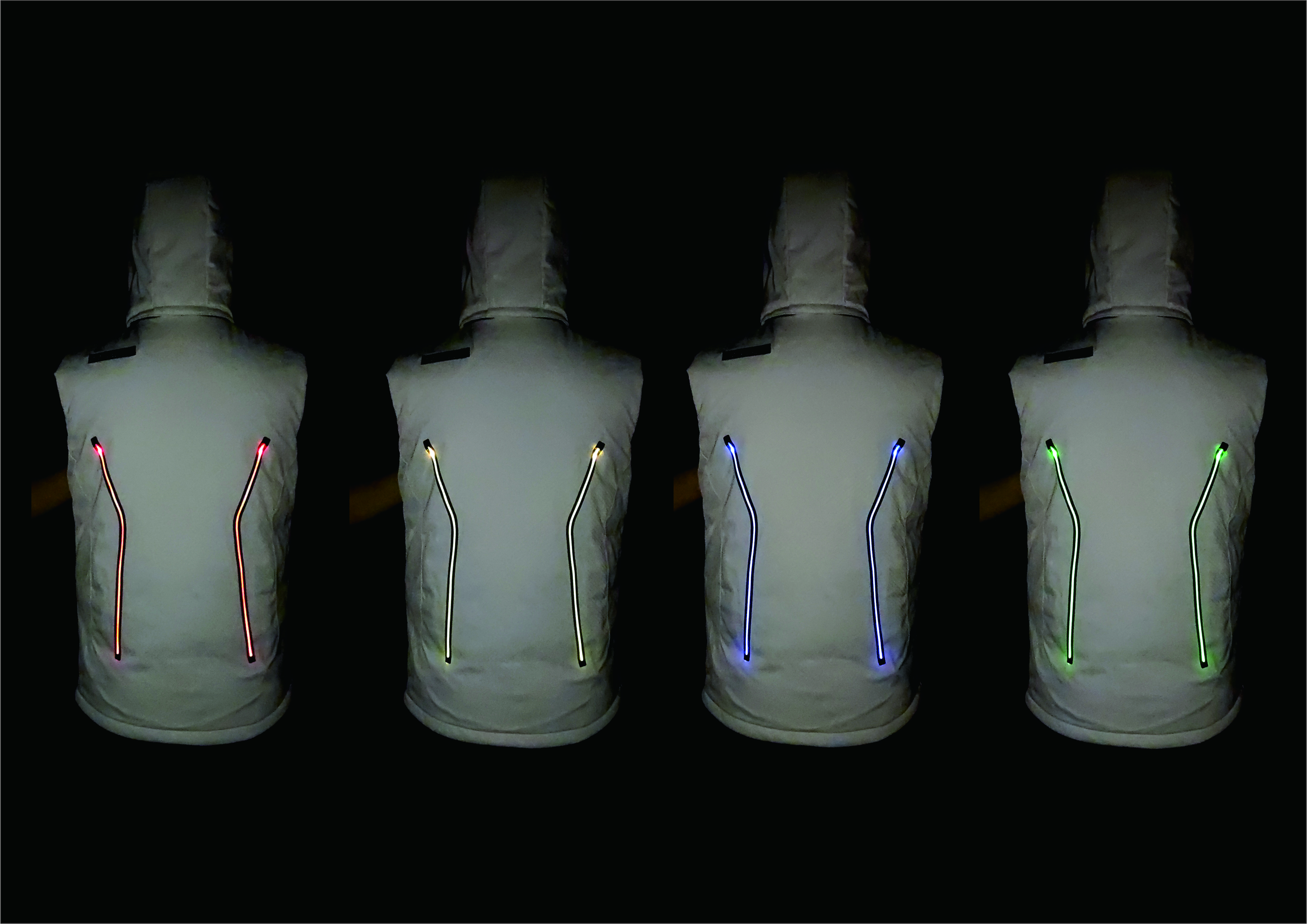 The first thing in winter is to keep warm, but for outdoor adventure enthusiasts, ice and snow athletes, outdoor workers and commuters, the cold weather can not stop them from going out of the house. Winter travel clothing as the first safety shield to protect the human body, must be able to resist the attack of low temperature, cold wind and wet cold. At the same time, in the On the basis of graphene electric heating, this multi-functional intelligent control vest integrates intelligent algorithms to adjust the ambient temperature of the clothing with changes in the external environment, improve the comfort of the clothing and reduce energy consumption, and synchronize the lighting effect, cool and colorful, to provide help for winter outdoor travel.The heating layer and flexible high-light optical fiber of this multifunctional smart control vest adopt integrated design, which is connected to the mobile APP through Bluetooth, easy to operate, simple and beautiful.This multifunctional intelligent control vest introduces auxiliary materials such as magnetic buckle, magnetic quick-disconnecting zipper, waterproof zipper, etc.This multi-functional smart control vest is an intelligent wearable product with the main functions of winter cold protection and cool lighting, with comfort, ease of wearing and taking off, universality and aesthetics.