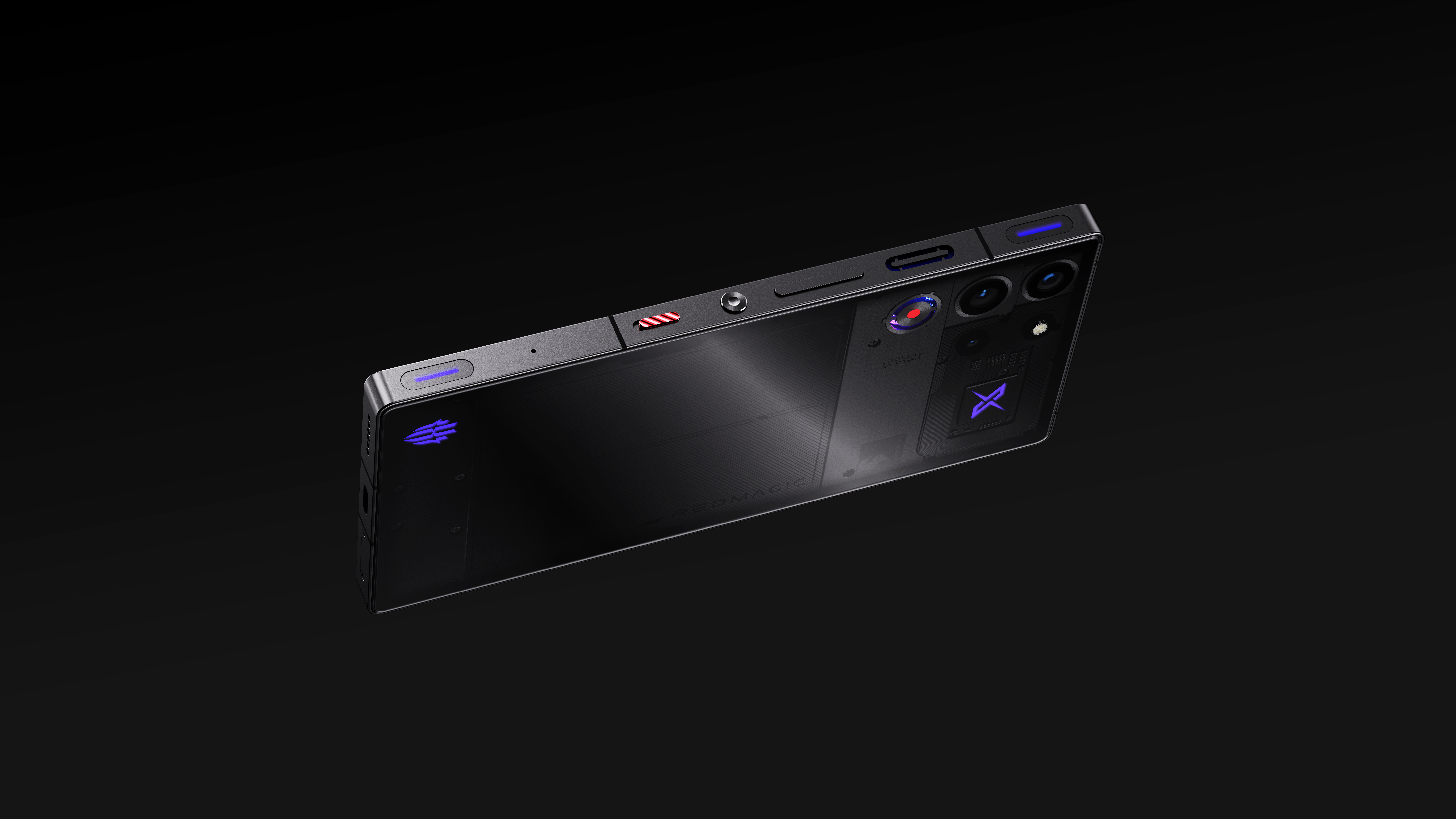 REDMAGIC 10Pro DAO Transparent Edition is the flagship model of the Red Magic mobile phone series, providing mobile entertainment players with a higher-performance entertainment experience.The front adopts a full-screen design without holes to ensure that users can enjoy the best visual effects. The heat dissipation mode adopts the innovative sandwich structure passive heat dissipation and built-in fan active heat dissipation to solve the contradiction between the battery life and heat generation of high-performance mobile phones. The Red Magic 10 Pro Deuterium Front Transparent Edition uses the world's first composite liquid metal cooling technology, which increases thermal conductivity by 40% compared to traditional liquid cooling and reduces core temperature by 5°C, solving the problem of insufficient heat dissipation under high load with traditional cooling technology. In terms of screen, it jointly created a 1.5K hole-free screen with BOE, achieving compatibility of 1.5K resolution and 144Hz refresh rate, a screen-to-body ratio of 95.3%, and a black border of only 1.25mm. It has advantages in screen display effect and screen-to-body ratio, and supports 2592Hz ultra-high frequency PWM dimming and DC-like dimming dual modes, effectively reducing the stimulation of flicker to the eyes and alleviating visual fatigue. Power management and charging separation technology ensures battery life for long gaming sessions and solves the problems of heat and battery loss when charging while playing. The "Deuterium Front Transparent" design language is highly recognizable, with a flat back design that reduces the discomfort caused by the bulge on the back of traditional mobile phones, and focuses the components visually on the upper bracket. The cooling fan and metal module structure are deeply optimized to perfectly combine technological aesthetics and performance requirements.The "Niu Mowang battery" and advanced technology are used to reduce the risk of overheating; 80W fast charging takes into account both efficiency and safety, and the charging separation technology prevents battery overheating and ensures safe use. 2592Hz ultra-high frequency PWM dimming and DC-like dimming reduce stroboscopic stimulation; through multiple eye protection certifications, it effectively filters blue light and protects eye health. The flat back design fits the palm of your hand to reduce grip fatigue; the ergonomic shoulder buttons are easy to operate and improve ease of use.The front adopts a full-screen design without holes, achieving an unprecedented high screen-to-body ratio, ensuring that users can enjoy the best visual effects. The back adopts a fully flat and transparent design, which fits perfectly with the palm when held horizontally, reducing hand fatigue and improving grip stability while maintaining flatness and beauty. The "X-Gravity" design language focuses the components visually on the upper bracket. The cooling fan and metal module structure are deeply optimized. The RGB light strip on the back supports 16.8 million customized colors and can change the lighting effects according to the game scene or music rhythm. It not only has a personalized decorative effect, but also enhances the entertainment atmosphere. It is also its unique identification as a high-performance entertainment mobile phone, perfectly combining technological aesthetics and performance requirements.