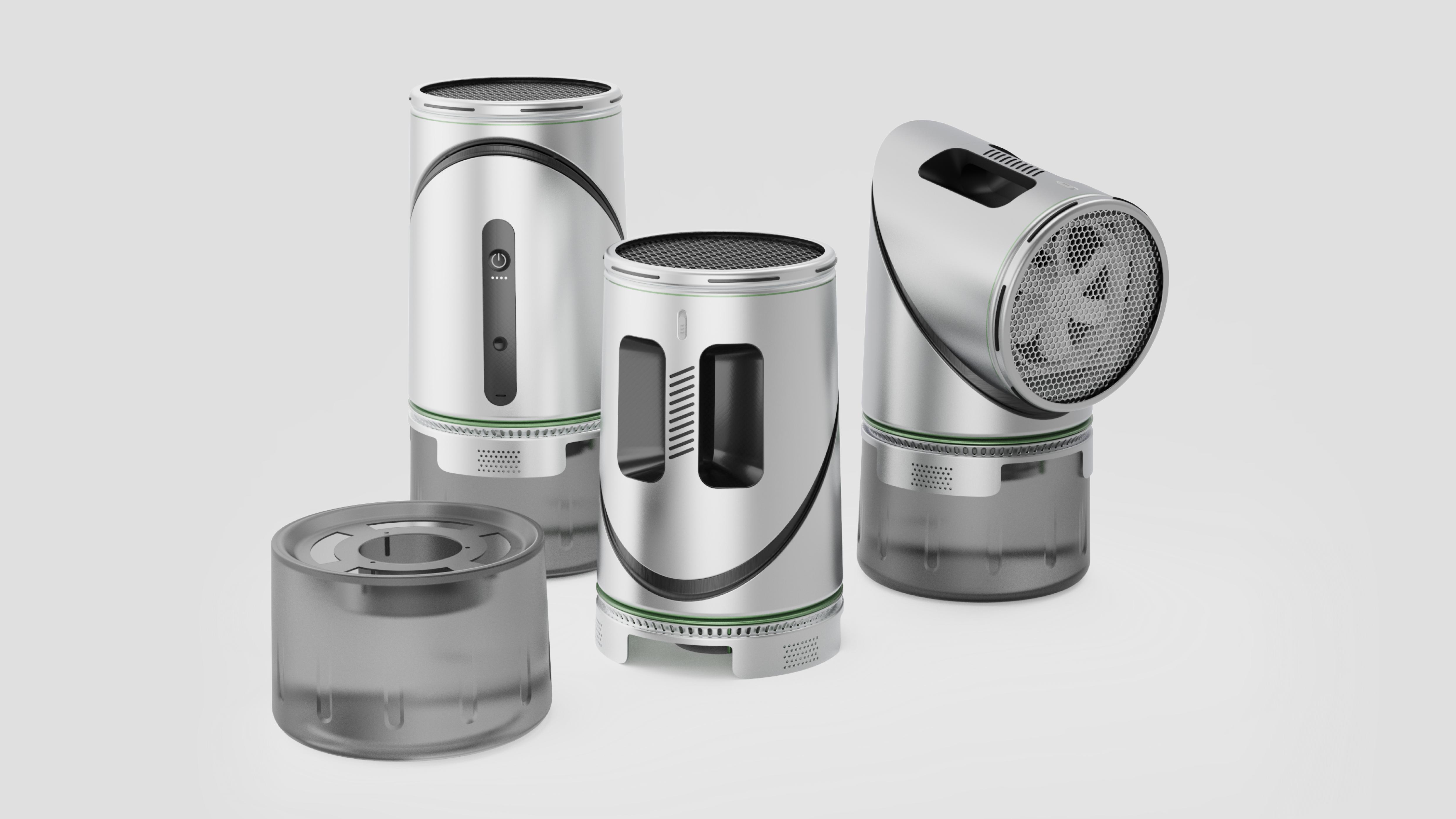 Brief description: "GreenFlow" is a portable and detachable desktop range hood. It cleverly combines ancient environmental wisdom with modern living needs, and is an innovative product that combines cultural connotations, practical functions, and design aesthetics. Design Background: The core inspiration for this design comes from the national treasure level cultural relic of the Western Han Dynasty in China - Bronze Lamp in the shape of Goose Carrying Fish. The design team was attracted by the unique and scientifically environmentally friendly design of this antique: the lamp, through its curved neck tube, can guide the smoke generated by combustion to the water in the lamp belly. The smoke dissolves in water, thus achieving the purpose of purifying the air. The ancient wisdom of "circular smoking control" has become the starting point and philosophical foundation for the design of "GreenFlow" range hoods. Design purpose: With the increasing popularity of outdoor camping and other lifestyles, the problem of oil fume in multiple scenarios (such as camping and outdoor barbecue) is becoming increasingly prominent. The core purpose of this design is to provide users with a portable, efficient, and environmentally friendly smoke purification solution by drawing on ancient environmental protection concepts and combining them with modern technology. It is committed to creating a smoke-free, comfortable, and healthy experience, while solving practical problems and inheriting and promoting scientific ideas in excellent traditional Chinese culture.New application: The biggest innovation of the work lies in the expansion of application scenarios. It transforms the traditional fixed and large oil absorbing smoke equipment in the kitchen into a small appliance that can be easily carried and flexibly applied to any desktop. This provides a new oil fume solution for various emerging living scenarios such as outdoor camping, RV travel, apartment balconies, and study drinks.Health Focus: This is the product’s core human-centered commitment. Through high-efficiency smoke purification, it directly reduces users’ inhalation of cooking fumes and harmful particulate matter during cooking, protecting respiratory health while creating a smoke-free, fresh environment at the source. User-Friendly Design: The product prioritizes seamless user experience. Its portable design supports flexible use across multiple scenarios. Detachable, replaceable components significantly reduce cleaning and maintenance effort—users can easily remove, clean, or replace filters, ensuring sustained purification performance and hygiene. This embodies respect for users’ time and long-term usage costs. Safety Assurance: As a countertop appliance, safety is paramount. Examples include a low-center-of-gravity, non-slip base to prevent tipping on uneven outdoor surfaces. Electrical components employ low-voltage power supply and waterproofing, guaranteeing absolute safety near heat and water sources.Aesthetic Form: The work draws inspiration from the “rustic elegance and natural charm” of the Bronze Lamp in the shape of Goose Carrying Fish, capturing its essence of graceful and organic form. Its exterior features smooth, modern lines, while the twisted neck design for smoke extraction echoes that of the Bronze Lamp in the shape of Goose Carrying Fish, exuding a strong sense of formal beauty. Functional Beauty: Its functional beauty lies in the perfect integration of “form following function.” In the Bronze Lamp in the shape of Goose Carrying Fish, the goose’s curved neck cleverly forms the smoke duct, while the body naturally becomes the purification chamber. Similarly, this product elegantly draws in and purifies oil fumes, with a clear and efficient operational logic that reflects an inherent beauty of order. Material Beauty: The work showcases a fusion of classical and modern aesthetics through the contrast between eco-friendly modern materials (such as matte-textured recycled plastics and brushed metal) and the ancient vessel form. The texture, color, and tactile qualities of the materials are carefully designed to convey a sense of warmth and approachability.5. Reducing Material Consumption: The work embodies a “circular reuse” design philosophy. Its modular structure and replaceable components significantly extend the overall product lifespan, allowing users to replace only the core filter materials instead of discarding the entire product. This fundamentally reduces resource waste caused by product iterations and damage. Reducing Energy Consumption: As a portable device, it is designed to achieve an optimal energy efficiency ratio. Combined with an optimized aerodynamic design, it delivers powerful purification performance with minimal power consumption, aligning with the principles of sustainable and green design. Reducing Pollution: This is the core value of the work. By capturing and purifying oil fumes at the source, it directly reduces pollution to both indoor and outdoor air environments.